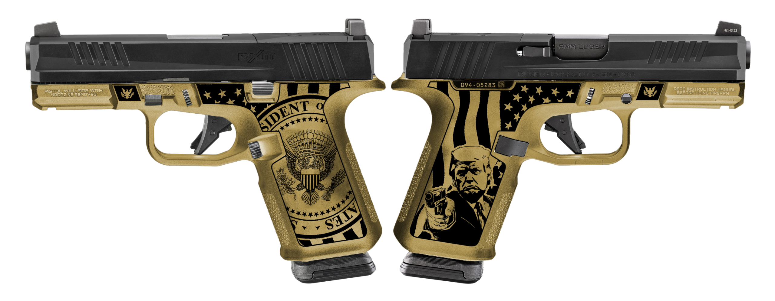 RUGER RXM 9MM PISTOL 4″ AMERICAN FLAG O.R. 2-15RD MAGS – ORION EXCLUSIVE